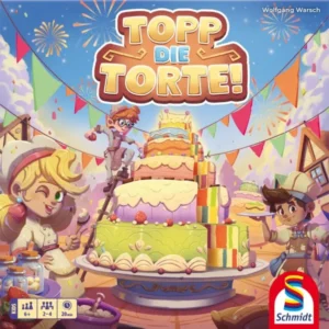 In „Topp die Torte" bauen Jung-Bäcker:innen Schicht für Schicht eine Torte auf und müssen dabei mit gutem Augenmaß passende Tortenlagen auswählen. Jede Übereinstimmung der Füllungen bringt bunte Edelstein-Zuckerwürfel, die in Zuckergläser gesammelt werden. Für die meisten Punkte ist Vielfalt entscheidend - die Kinder müssen sich auf unterschiedliche Füllungen konzentrieren.
